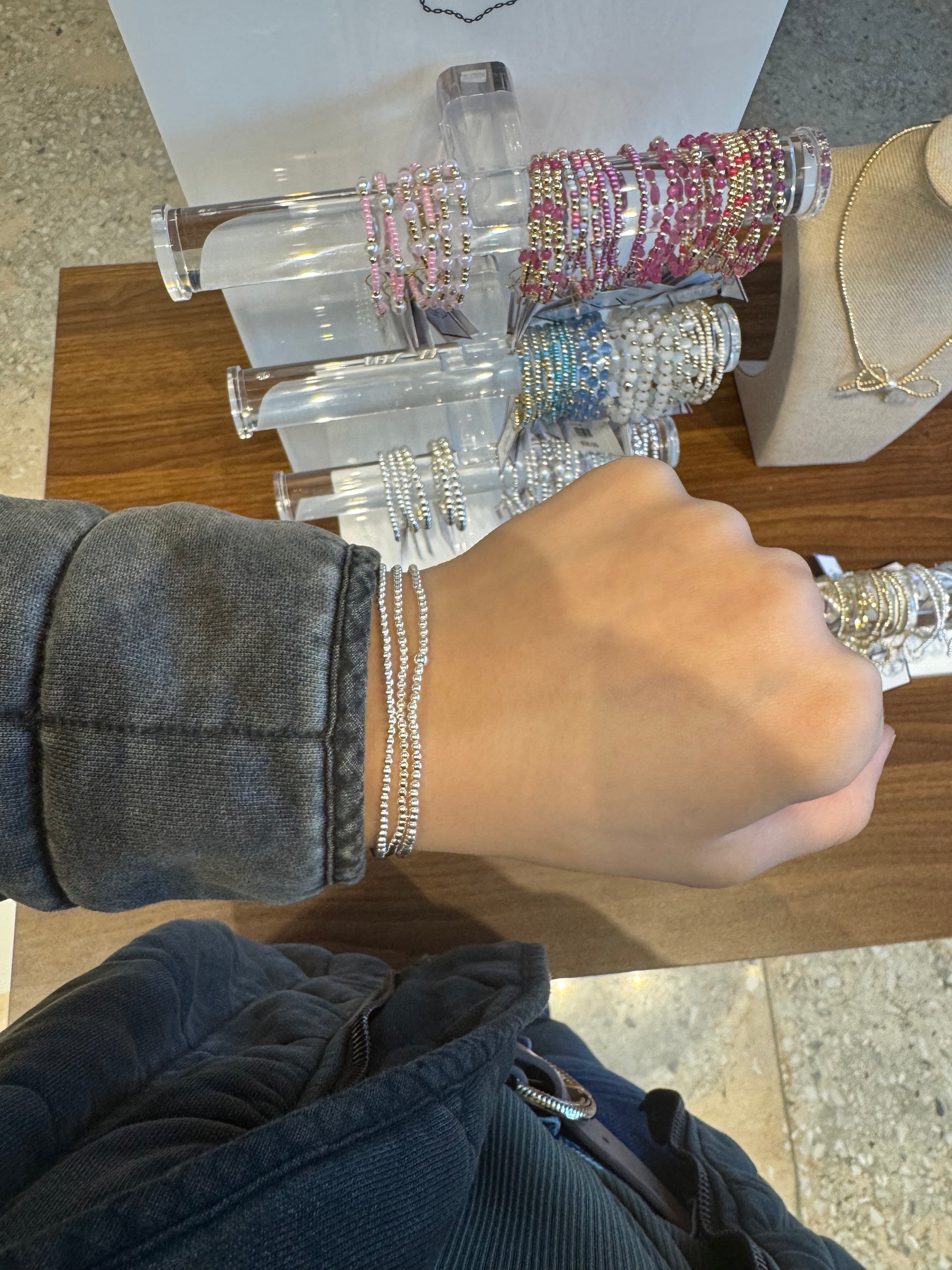 Classic 2mm Sterling Silver Beaded Bracelet