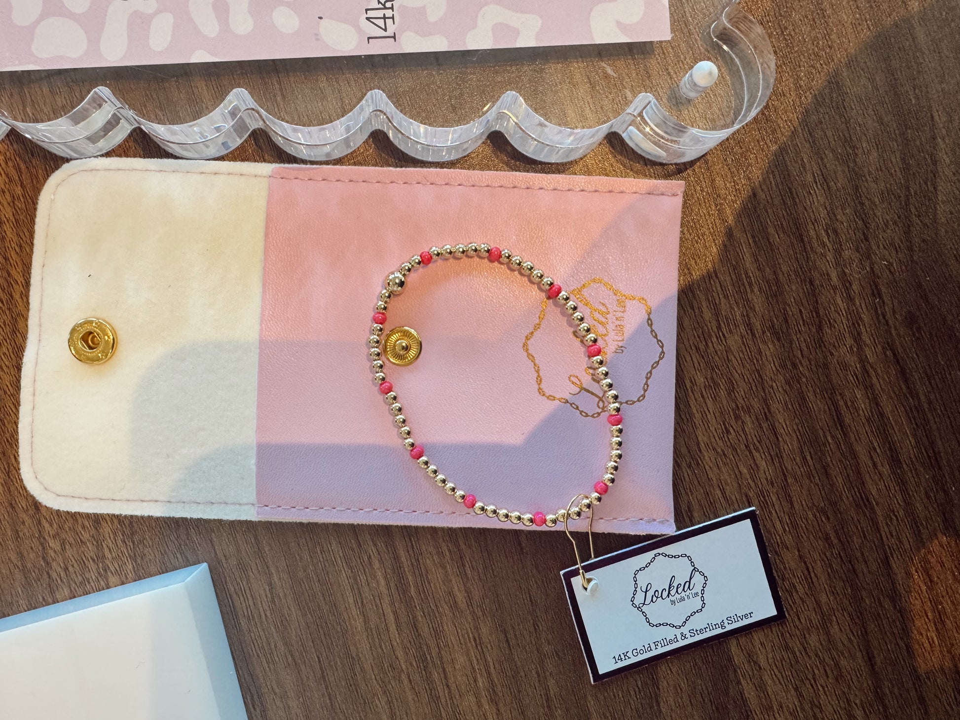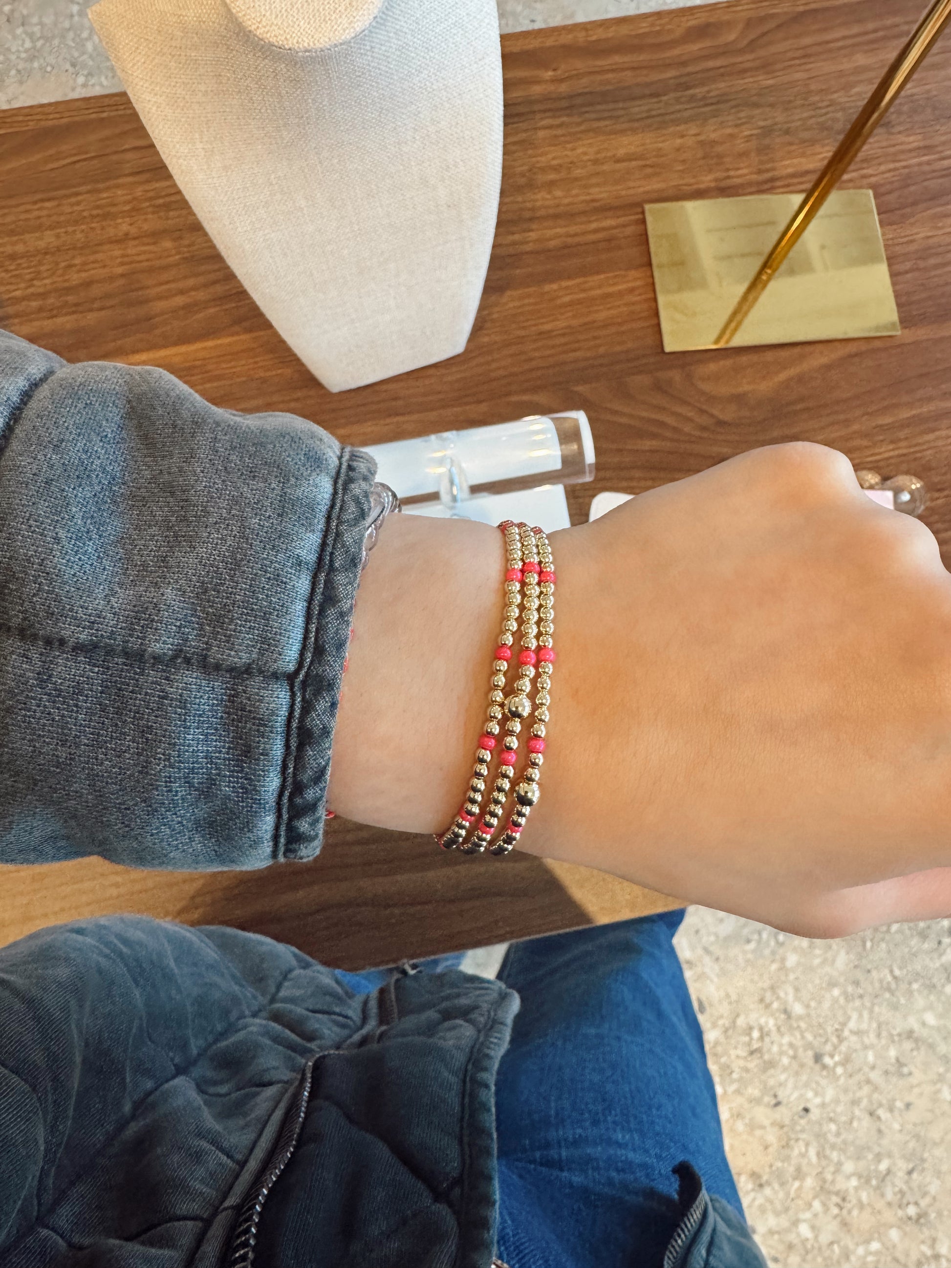 Classic 3mm Gold Filled BEaded Bracelet with Watermelon Czech Glass